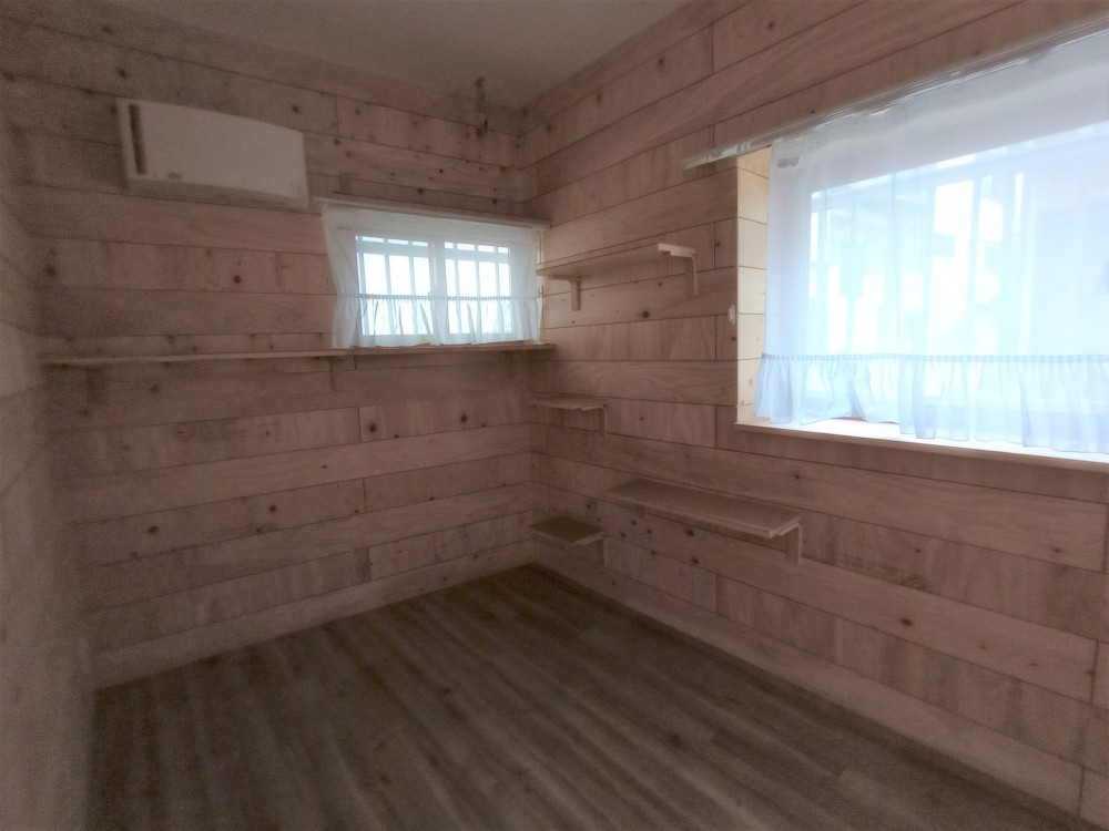 2023年にNecosum第1号としてリフォームが完了した戸建て物件。リビングの窓辺にはカウンターを備え、壁面にはステッを設置。リビングのドアには猫用のドア。床や壁は耐久性やお手入れしやすさを考えた仕様に。ニオイ対策やお部屋の温度管理が考慮して換気扇を備えました。洗面室には大きなカウンターとペット用シンクも備えました。外への飛び出し防止用の扉も準備しました。人と猫が快適に暮せる家~Necosumはここからスタートしました。
