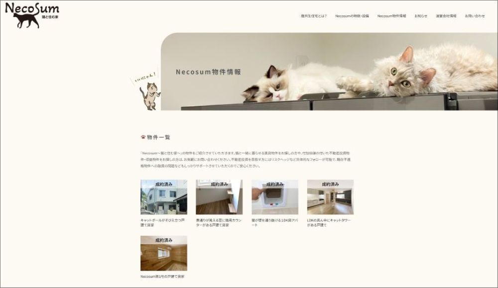 先月2月22日は”2・2・2=ニャン・ニャン・ニャン”で「ねこの日」でした。秋田県横手市の忠猫神社では毎月22日を猫の日として猫の健康祈願や供養祭が執り行われるそうです。たくさんの猫飼いさんや猫と暮らす家をお探しの方に、私たちが手掛ける、空き家を再生し猫も人も安心して快適に暮せる家『Necosum(ねこすむ)』のことを知ってもらいたい!と2024年にこのサイトを開設しました。神戸市内に『Necosum(ねこすむ)』は現在5軒。すべて成約済みでご紹介できる物件がありませんでした。が、お待たせしました!ようやく次の『Necosum(ねこすむ)』に向け動き出しました!