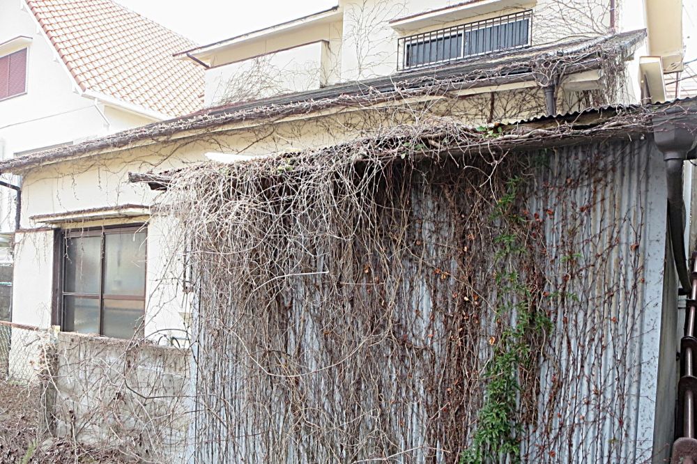 ツタの絡まる築60年超のこの空き家。人が住まなくなって10余年…生い茂る庭木たちが時の経過を物語り、同時に手が入るのを拒絶しているかのようです。素敵に生まれ変わらせるからね~と声をかけつつ再生スタートです。